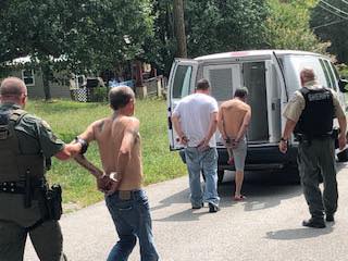 Matthew Wayne McClellan, 47, Jeffrey Lee Queener, 51, and Joey Ray White, 50, were arrested on scene for charges of Possession of Drug Paraphernalia.